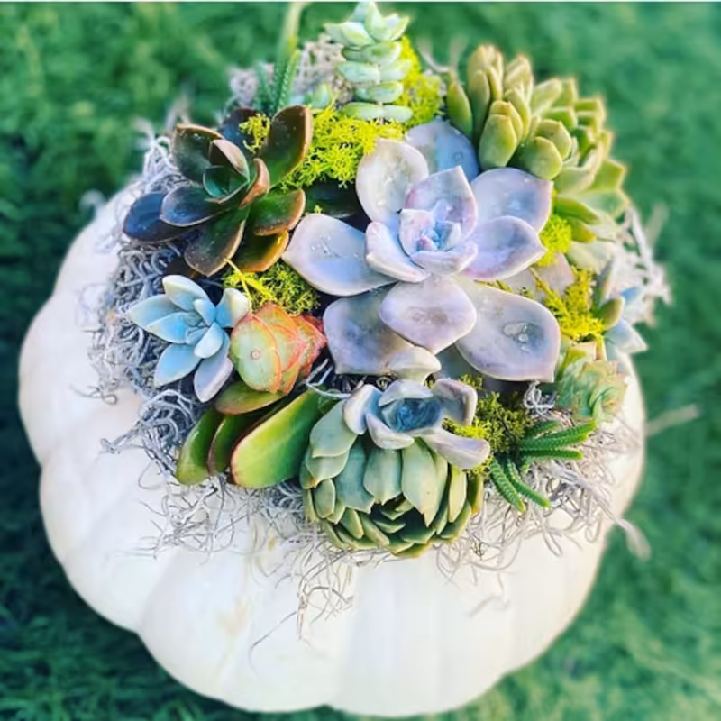 Pumpkin Succulent Gardens are a all time fall time must!!! Perfect for a centerpiece and last for months! Available in white or orange!!! The best part is after your done enjoying your pumpculent garden simply replant your succulents and grow your garden!!!